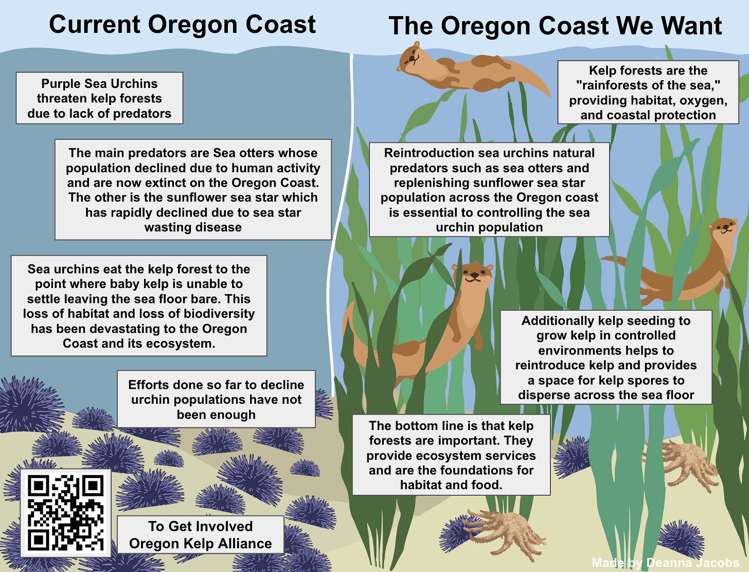 Within the last month, the Oregon Kelp Alliance (ORKA) received extensive funding from the National Oceanographic and Atmospheric Administration (NOAA). ORKA has appointed Galloway’s lab to lead research into predator loss and reintroduction, furthering his efforts to restore balance to the ecosystem. While Galloway’s primary research is on sunflower sea stars, he is also an avid supporter of sea otter reintroduction on the Oregon Coast. He works closely with the Elakha Alliance, an Indigenous nonprofit organization dedicated to reintroducing sea otters to the Oregon Coast—an effort deeply tied to restoring kelp forests and the biodiversity they support.